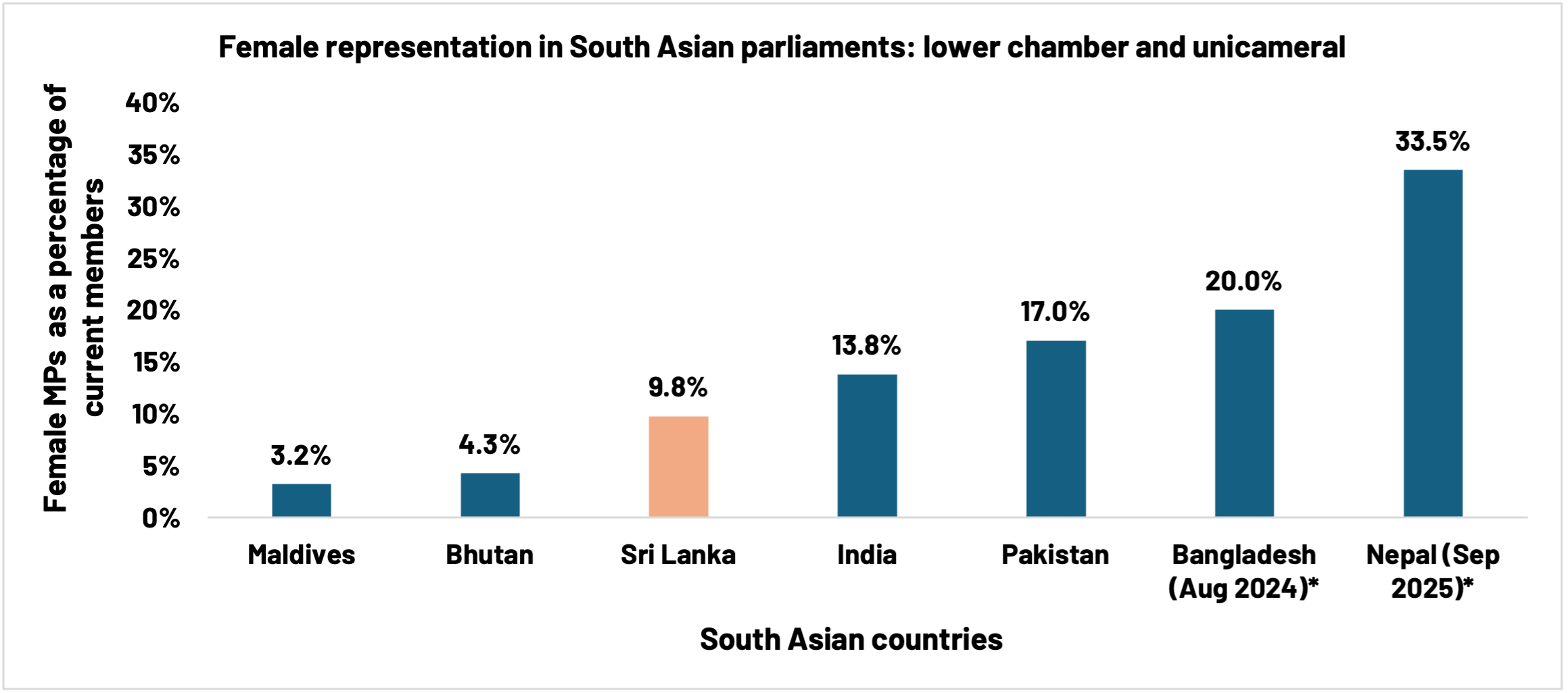 In sum, while Sri Lanka’s current parliament has achieved its highest-ever level of female representation, it continues to lag behind most South Asian countries.